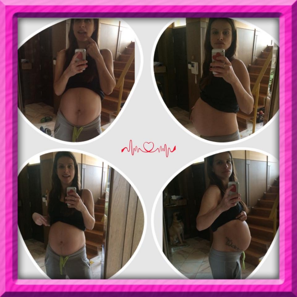Ez a kép róla készült a szülés előtt 3 nappal, a 34. héten. Az én hasam sem volt sokkal nagyobb. ;-)